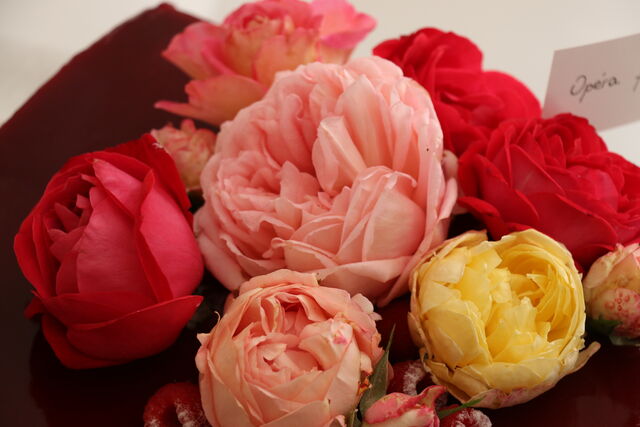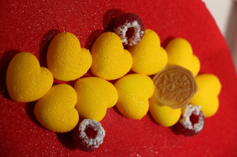 rose cake, genoise legere vanille, confit passion , ganache montée chocolat inspiration passion , chantilly mascarpone